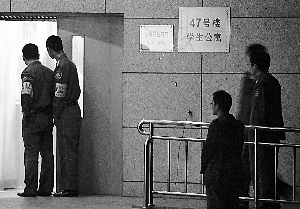 昨日傍晚6時(shí)35分,47號學(xué)生公寓南側(cè)地面上橫躺著墜樓男女的遺體,其中女孩身穿桃紅色睡衣,身下有大片血跡,男孩身穿灰色T恤衫,下穿牛仔褲。