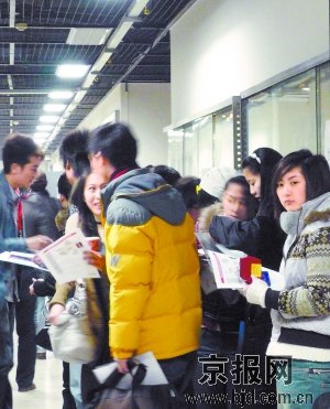 已經(jīng)工作兩年的張琳今天上午趴在電影學(xué)院教學(xué)樓大廳的椅子上認(rèn)真填著報名表,他準(zhǔn)備報考電影攝影專業(yè),已經(jīng)在中戲讀大三的弟弟站在他身后為他做報考指導(dǎo)。