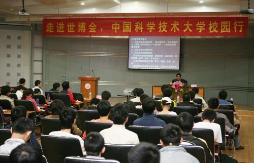 作為中國(guó)2010年上海世博會(huì)安徽宣傳周的重要活動(dòng)——“中國(guó)的機(jī)遇、世界的盛會(huì)”世博主題講座在中國(guó)科技大學(xué)開講。上海世博局國(guó)內(nèi)參展顧問、世博會(huì)宣講團(tuán)專家黃耀誠(chéng)系統(tǒng)地介紹了世博會(huì)的歷史和舉辦意義,并著重介紹了上海世博會(huì)的籌備情況。