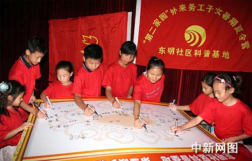 整個(gè)歡樂夏令營(yíng)系列活動(dòng)從7月9日至8月18日歷時(shí)一個(gè)多月。期間,主要有“看浦東、看世博”外出參觀、“動(dòng)手動(dòng)腦”小制作、健身智能比賽、“我們是新上海人”外來(lái)務(wù)工子女學(xué)說(shuō)上海話,以及“東明社區(qū)我的家”等活動(dòng),可謂周周有活動(dòng),內(nèi)容豐富,精彩有趣。