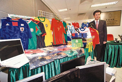 中新網(wǎng)7月9日電 據(jù)香港文匯報(bào)報(bào)道,南非世界杯掀起足球熱潮,售價(jià)僅及正版球衣1/3價(jià)錢(qián)的冒牌球衣也于各大甩賣(mài)網(wǎng)站熱賣(mài)。香港海關(guān)近日成功破獲18宗網(wǎng)上售賣(mài)侵權(quán)物品案,搜獲逾3000件冒牌貨及17臺(tái)計(jì)算機(jī),包括800件質(zhì)量差劣的冒牌球衣,總值逾39萬(wàn)元。被捕的22名男女中,包括3名大專(zhuān)學(xué)生、補(bǔ)習(xí)老師,甚至?xí)?jì)師等專(zhuān)業(yè)人士,涉及經(jīng)營(yíng)該等不法副業(yè),各人暫準(zhǔn)保釋候查。
