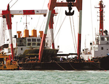 張健文認為可以派出曾經(jīng)打撈宋代古沉船“南海一號”的大型吊船“華天龍”來港,由于“華天龍”現(xiàn)在租給其它公司,正在西江一帶施工,所以最快要到星期五才能抵港。當(dāng)“華天龍”抵達,將拖船吊起后,會先抽走船內(nèi)的海水,整個過程需時約6至7小時。