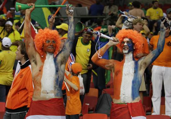 報(bào)道指出,世界杯誘發(fā)了許多球迷內(nèi)心深處的民族主義情愫。最可愛的民族主義可以被寫在臉上:戴上夸張的假發(fā)、在臉上涂抹國旗的顏色。而荷蘭隊(duì)的勝利則讓南非眾多的荷蘭人后裔感到由衷的自豪。