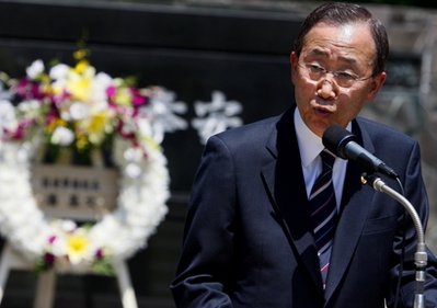 潘基文首先參觀了長崎市內的核爆資料館,會見了“長崎核爆受災者協(xié)會”會長谷口稜曄(81歲)及包括在日韓國人在內的受害者,聽他們講述了遭轟炸的經(jīng)歷。