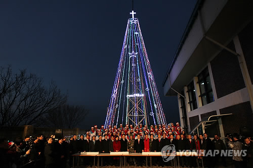韓國國防部則就點(diǎn)燈一事稱,位于京畿道愛妓峰上的圣誕樹將會(huì)繼續(xù)點(diǎn)燈到明年1月8日。