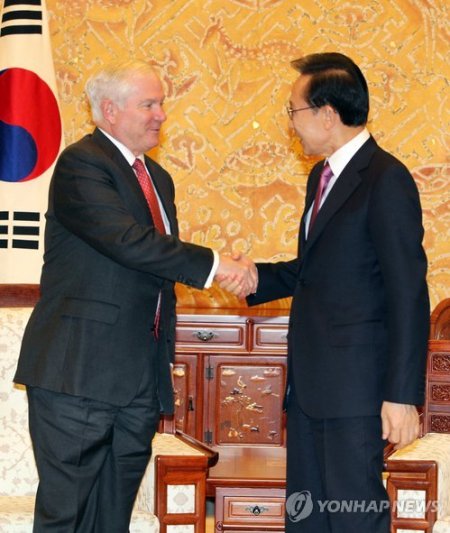 蓋茨向李明博詳細(xì)介紹最近他訪問(wèn)中國(guó)和日本的結(jié)果。蓋茨說(shuō),同中日官員就朝核問(wèn)題和東北亞局勢(shì)進(jìn)行了磋商。