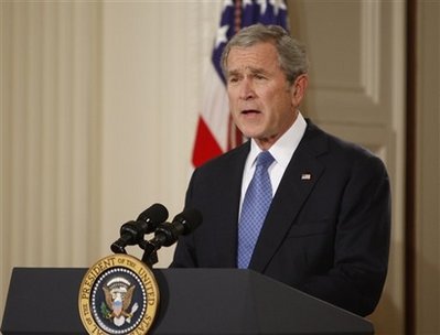盡管我們現在比7年之前更加安全,但是美國人民面臨的最大威脅仍是另外一場恐怖襲擊。我們的敵人頗具耐心,他們已決定將再次發(fā)動襲擊。美國沒有做任何事情去自尋麻煩,也沒有做任何事情應得到這種報應。但是我們被賦予了莊嚴的職責,我們必須面對。我們必須抵制自滿情緒;我們必須堅守決心;我們永遠不能放松警惕。