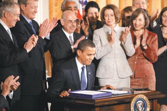 中新網(wǎng)2月6日電 據(jù)臺(tái)灣《聯(lián)合報(bào)》報(bào)道,美國(guó)眾院4日表決擴(kuò)大“州兒童醫(yī)保計(jì)劃”(SCHIP)法案,結(jié)果以290票對(duì)135票的壓倒性比數(shù)通過,奧巴馬總統(tǒng)隨即在白宮簽署使其生效,并稱之為邁向?qū)崿F(xiàn)他“全民醫(yī)保”競(jìng)選承諾的第一步。