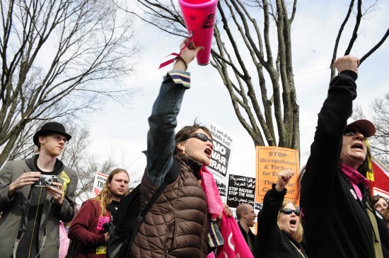 來自美國各地和各個民間組織的數(shù)千名反戰(zhàn)人士21日聚集在美國首都華盛頓,舉行名為“向五角大樓進(jìn)軍”的游行示威活動,紀(jì)念伊拉克戰(zhàn)爭爆發(fā)六周年,要求美國政府立即從伊拉克和阿富汗撤軍。