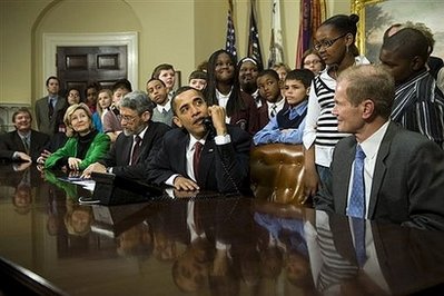 奧巴馬和太空站的航天員打招呼,他首先恭賀“發(fā)現(xiàn)號”的航天員,順利完成這次的太空任務(wù),又指對航天員的工作成就感到驕傲,并且特別向太空站的俄羅斯及日本航天員問好。他又希望各國無論在太空或地球上,也可以互相合作。