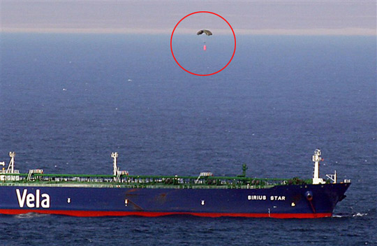 2008年11月15日,索馬里海盜劫持了沙特超大油輪“天狼星號(hào)”,并扣押23名不同國籍的船員作為人質(zhì),勒索的贖金達(dá)到350萬美元。無奈之下,“天狼星號(hào)”用直升飛機(jī)于2009年1月9日傘降贖金,這一幕也被美國海軍拍了下來。據(jù)一些媒體報(bào)道,后來海盜因?yàn)榉众E不均發(fā)生爭執(zhí),造成乘坐的小船傾覆,多人死亡。為了一探事情的究竟,CNN聯(lián)系了一名生還的海盜。