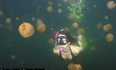 據(jù)英國媒體報(bào)道,來自美國波士頓的的計(jì)算機(jī)科學(xué)家弗拉德日前在世界上絕無僅有的無毒水母湖拍攝了自己女兒和水母嬉戲的圖片。他形容在帕勞水母湖里游泳如同置身于果凍中,“我們越往湖中游,就有越多的水母將我們包圍,看著云集的水母,真是令人愉快。”