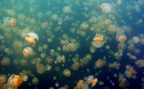 據(jù)悉,帕勞水母湖曾是海的一部分,由于地殼運(yùn)動,周圍的海床升高,逐漸將它與外海隔絕,形成了一個看似普通的內(nèi)陸咸水湖。其不普通在于,湖中大多數(shù)海洋生物都隨著養(yǎng)分的消耗而消亡,只剩下了一種低等的、靠少量微生物就可以生存的海洋生物——水母。由于天敵們的消失,這些水母“遺失”了祖先用以防衛(wèi)自身的武器——身體內(nèi)的毒素。這樣,帕勞水母湖擁有了世界上獨(dú)一無二的無毒水母。