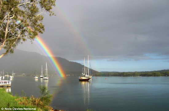 據(jù)英國《每日郵報(bào)》報(bào)道,澳大利亞業(yè)余攝影師諾拉-戴維斯稱,她拍到了一張有六道彩虹美景的圖片,六道彩虹出現(xiàn)在她家附近的一個(gè)平靜的湖面上。