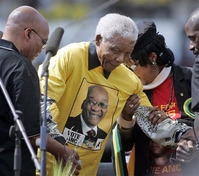 而曼德拉的到場,提高了祖馬的競選聲勢(shì)。曼德拉發(fā)表了提前錄制的講話。