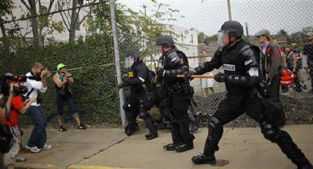 中新網(wǎng)9月25日電 24日,二十國集團峰會主辦城市匹茲堡發(fā)生千人游行示威,抗議資本主義制度。示威者砸壞了市中心多家沿街店鋪窗戶,警方不得不動用胡椒瓦斯(pepper gas)和警棍驅(qū)散抗議人群。
