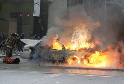 據(jù)悉,約2000名示威者前日在多倫多街頭游行,有示威者與防暴警察沖突,2人被捕!(jù)電視臺(tái)記者稱,示威者向警察投擲物件。一輛警車被焚毀。示威組織者說,將有5000到1萬(wàn)人參加峰會(huì)期間的示威和抗議活動(dòng)。