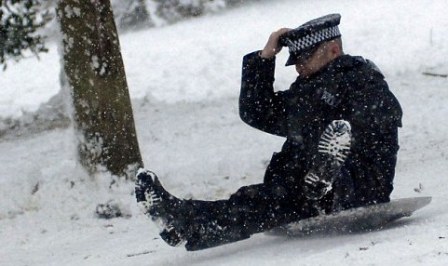 中新網(wǎng)1月7日電 綜合英國媒體報道,英國的連日暴雪天氣為英國警方和普通民眾都帶來了不少麻煩,許多民眾因被他人用雪球擊中而向警方投訴。但警方卻表示大雪也能帶來好處:他們沿著一名逃犯在雪地中新留下的足跡成功將其抓捕。而且,倫敦警察們還坐著自己“心愛”的武器——防暴盾牌從山坡上往下滑,以此玩樂。