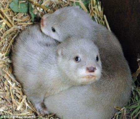 藍色星球水族館經(jīng)理湯姆.康威爾(Tom Cornwell)表示,一般情況下,動物寶寶應(yīng)該會有與父母相同的體貌特征,但這兩只白色水獺寶寶的父母皮毛都為黑棕色。