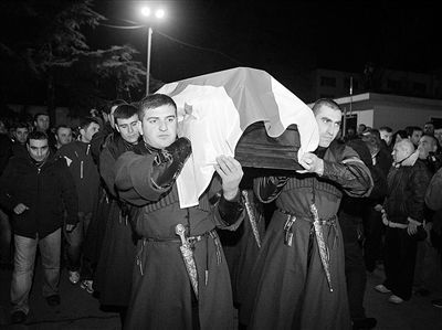 載著庫馬里塔什威利遺體的靈柩上覆蓋著格魯吉亞的國旗,他的母親悲痛欲絕,庫馬里塔什威利的父親不停的呼喊著兒子的名字。