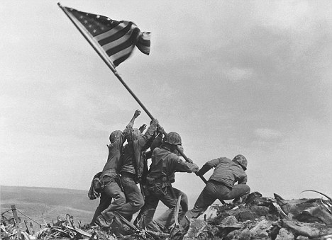 1945年2月19日至3月26日,美軍以7000名士兵死亡、2.6萬名士兵受傷的慘重代價(jià)攻占了日軍控制的硫磺島。隨軍攝影師喬-羅森薩爾當(dāng)時(shí)拍下了一張名為《國旗豎立在硫磺島上》的經(jīng)典照片,并獲得了普利策獎(jiǎng)。美國戰(zhàn)后在弗吉尼亞州建造阿林頓國家公墓時(shí),以這張照片為模本制成了一尊雕像,以紀(jì)念在這場戰(zhàn)爭中犧牲的美國軍人。