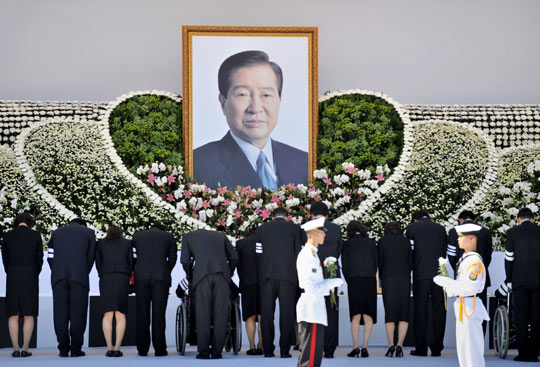 金大中因肺炎醫(yī)治無(wú)效,于八月十八日病逝。韓國(guó)政府隨即決定為他舉行為期六天的國(guó)葬。這是韓國(guó)歷史上首位前總統(tǒng)享受國(guó)葬的待遇。中國(guó)政府派唐家璇、美國(guó)政府派奧爾布賴特、日本政府派河野洋平出席金大中的葬禮。