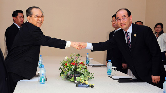 韓朝紅十字會26日下午在朝鮮金剛山酒店舉行全體會議,就安排離散家屬會面問題交換了立場。