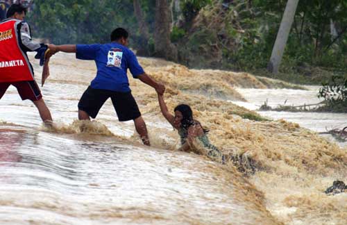 許多地區(qū)的洪水高達(dá)兩層樓高,被洪水困在屋頂?shù)木用袂疤焱砩暇烷_始紛紛打電話到無線廣播電臺求救。這簡直就是兩星期前,臺風(fēng)“凱薩娜”襲擊菲律賓時,大馬尼拉區(qū)所發(fā)生的情形的再版!皠P薩娜”引發(fā)的洪水使大馬尼拉區(qū)和附近省份頓成澤國,交通癱瘓超過12小時,并造成300多人喪生。