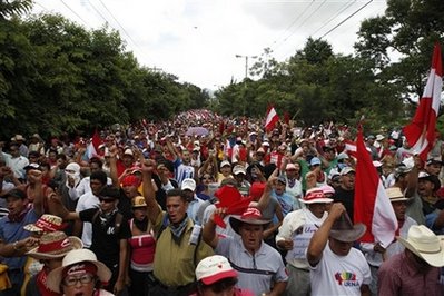洪都拉斯6月28日發(fā)生軍事政變。數(shù)百名全副武裝的軍人強(qiáng)行扣押并驅(qū)逐了總統(tǒng)塞拉亞。洪都拉斯議會議長米切萊蒂同一天就任臨時總統(tǒng)。但塞拉亞本人表示自己沒有辭職,將以總統(tǒng)身份重返洪都拉斯。此后,該國爆發(fā)大規(guī)模游行示威和沖突,政局陷入動蕩。
