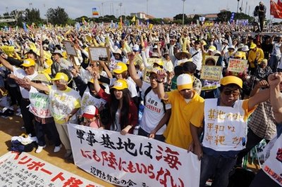 據(jù)報(bào)道,將機(jī)場遷至鹿兒島縣德之島的方案遭到了當(dāng)?shù)氐膹?qiáng)烈拒絕。日本首相鳩山由紀(jì)夫能否按照承諾在5月底前解決搬遷問題令人擔(dān)憂。政府內(nèi)部有人主張回歸遷往名護(hù)市施瓦布軍營沿岸地區(qū)這一現(xiàn)行方案。集會(huì)顯示了沖繩拒絕縣內(nèi)搬遷的民意,這將使得政府更加難以應(yīng)對。