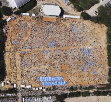 參加集會(huì)的有眾多普通市民和縣內(nèi)41個(gè)市町村的39名首長。除了該縣選出的執(zhí)政黨國會(huì)議員外,前自民黨政權(quán)時(shí)期同意將機(jī)場遷至名護(hù)市的自民黨和公明黨的縣支部也參加了大會(huì)。自民黨和公民黨沒有參加去年11月的2萬人反基地集會(huì)。