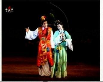 在眾多演出中,最具特色的當(dāng)數(shù)中國(guó)的京劇表演,這是京劇首次登上“四月之春”藝術(shù)節(jié)的舞臺(tái)。因?yàn)閾?dān)心外國(guó)觀眾難以理解,演出劇目全部是《龍宮借寶》、《汗津口》、《天女散花》、《拾玉鐲》之類的武戲。劇團(tuán)的這一設(shè)計(jì)也收到了良好的效果,孫悟空飛舞的金箍棒、關(guān)羽于禁的廝殺都迎來(lái)朝鮮觀眾的陣陣掌聲!妒坝耔C》對(duì)白不多,也沒(méi)有精彩的武打場(chǎng)面,但顯然演員的一舉一動(dòng)都為觀眾所理解,女兒家那點(diǎn)害羞、猶豫和欣喜演繹得恰到好處,不時(shí)引來(lái)臺(tái)下會(huì)心的輕笑。這也讓人感覺(jué)到中朝兩國(guó)不僅地理相鄰,而且文化相通,東方的幽默和思維讓兩國(guó)的藝術(shù)能夠走得更近。當(dāng)然,畢竟是異國(guó)文化,在一個(gè)多小時(shí)的演出里不可能了解京劇的全部。演出結(jié)束后,一位朝鮮觀眾興奮地稱贊京劇真是太精彩了,然后好奇的問(wèn),演員們是不是都是搞雜技出身的?