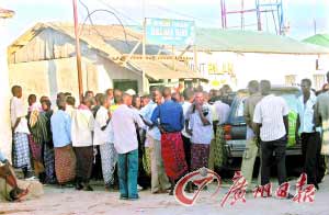 大街上坑坑洼洼、灰塵彌漫,不時可見一夜暴富的海盜駕駛豪華轎車揚長而去。這里是索馬里海盜的“老巢”,海盜活動給當?shù)貛砭薮笫找妗H?zhèn)焦點是當?shù)?4小時營業(yè)的“股票交易所”。