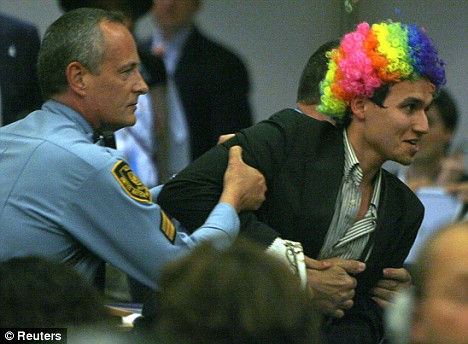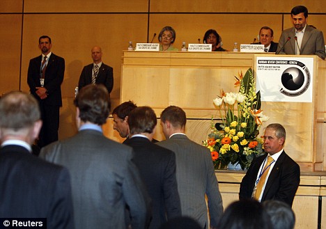 據(jù)美聯(lián)社報道,當伊朗總統(tǒng)內(nèi)賈德20日在瑞士日內(nèi)瓦聯(lián)合國反種族主義大會發(fā)表批評以色列的言論時,數(shù)十位西方外交官中途退場,兩名化裝成小丑的示威者向內(nèi)賈德投擲假鼻子。會議從一開始就很混亂。當內(nèi)賈德開始講演時,兩名戴著彩色假發(fā)的示威者向他扔去了小丑的紅色假鼻子。來自法國的一個猶太學(xué)生組織稱,它試圖向人們傳達“會議只不過是一場假面舞會”的信息。一名示威者大喊:“你是一個種族主義者!!彼土硪幻就唠S后被安保人員帶離現(xiàn)場。內(nèi)賈德回應(yīng)稱:“我請所有尊敬的貴賓原諒這些無知的人。他們沒有得到足夠的信息!