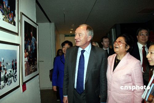 當?shù)貢r間11日晚,中國全國人大常委會副委員長、全國婦聯(lián)主席顧秀蓮在倫敦市長利文斯通的陪同下,參觀在倫敦市政廳舉辦的“中國婦女”攝影展。