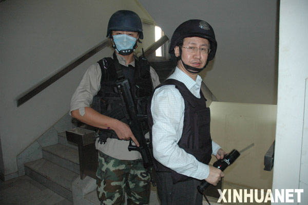 記者和中國使館人員以及武警雪豹突擊隊警衛(wèi)小組的戰(zhàn)士紛紛在煙塵中沖出房間。中國駐伊拉克大使常毅立刻把大家召集在屋頂最為堅固的門廳中,指揮大家采取自救措施。在曼蘇爾飯店中餐廳工作的兩名中國廚師跑到使館求救。他們受了傷,身上沾滿鮮血,大使夫人和武警戰(zhàn)士立刻取來急救包為他們包扎。