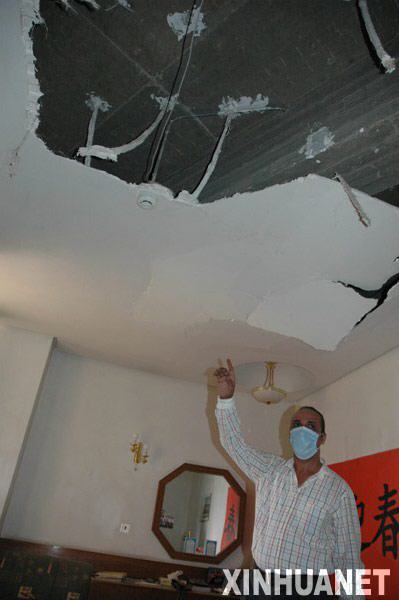 就在拿到相機轉(zhuǎn)身的一瞬間,第二聲巨響響起,整個大樓劇烈顫抖起來,陽臺的玻璃門爆裂,無數(shù)的碎玻璃打在記者剛離開的辦公桌前。陽臺上的衛(wèi)星電話、辦公桌上的英文字典和地上的垃圾桶被氣浪掀飛起來,記者也被氣浪掀倒在沙發(fā)后。鋁合金門框整個砸到墻上。記者的頭頂碎石亂飛,天花板出現(xiàn)了3個大窟窿,落下的天花板砸在記者床上。樓道里傳來其他房間的天花板和門窗倒塌之聲,嗆人的煙霧充滿整個樓道。
