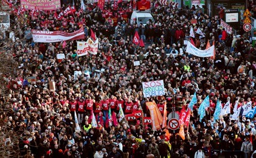 根據(jù)民意調(diào)查,大罷工得到大多數(shù)法國選民的支持。當(dāng)天法國各地有近200場示威游行活動,共有250萬人參加。