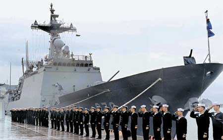 中新網(wǎng)3月4日電 據(jù)韓國《中央日報》報道,3日,將被派遣到索馬里海域的韓國海軍“清海部隊”成立儀式在海軍作戰(zhàn)司令部釜山基地舉行。清海部隊擁有一艘4500噸級驅(qū)逐艦“文武大王艦”、一架反潛直升機(jī)和30名履行訊問搜索任務(wù)的特戰(zhàn)人員等,加上文武大王艦上原有的船員,總規(guī)模達(dá)到了300多人。