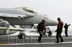 媒體記者在首爾南部京畿道的美空軍烏山基地乘上運(yùn)輸機(jī),經(jīng)過約1小時(shí)15分后著陸在斯坦尼斯號上。對于斯坦尼斯號的所在方位,美軍方面僅表示位于距日本海的韓國沿岸“東北方向約200英里(約320公里)的海上”。