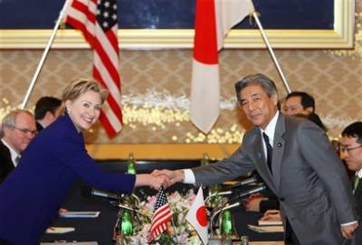 希拉里稍后會和日本首相麻生太郎及防衛(wèi)大臣濱田靖一會談,預(yù)料會在謀求加強(qiáng)美日同盟的基礎(chǔ)上,討論朝鮮核問題和日美同盟關(guān)系,希拉里并會和日方簽署一份協(xié)定,將5萬名派駐沖繩的美國海軍陸戰(zhàn)隊員中的8000人調(diào)往關(guān)島。她還會同最大在野黨民主黨黨魁小澤一郎會面。