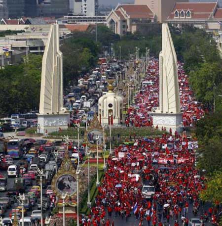 這是阿披實(shí)上臺以來反獨(dú)聯(lián)在曼谷舉行的第三次大規(guī)模反政府集會示威活動。去年十二月二十九日和三十日,反獨(dú)聯(lián)的支持者封鎖泰國國會大院,迫使阿披實(shí)臨時使用外交部代替國會大廈發(fā)表施政綱領(lǐng)。今年一月三十一日,反獨(dú)聯(lián)在王家田廣場和總理府前舉行大規(guī)模集會,要求阿披實(shí)解散國會下議院、加快對去年占領(lǐng)總理府和曼谷兩個機(jī)場的人民民主聯(lián)盟(民盟)領(lǐng)導(dǎo)人的起訴進(jìn)程、解除支持民盟的外長喀實(shí)的職務(wù)。