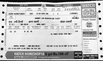 售票員接過記者填好的乘客信息單,將相關(guān)信息輸入電腦,很快,一張巴掌大小的紙片從打印機(jī)中出來。記者如數(shù)把錢遞了進(jìn)去,他清點(diǎn)之后把那張紙片遞了出來。這就是印度的火車票?!記者感到很好奇。票面上清楚地印著記者剛才填寫的主要信息(見上圖)。除了這些,還有一些廣告。