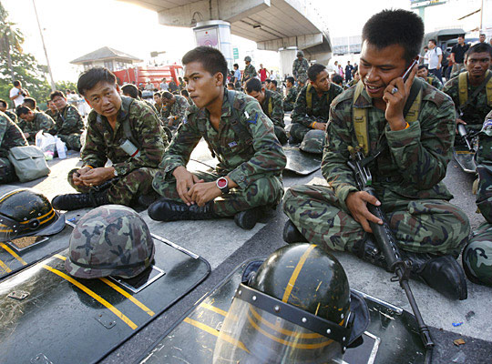 當(dāng)?shù)貢r(shí)間中午12時(shí)半,泰國警察總局官員和“紅衫軍”主要領(lǐng)導(dǎo)人在總理府前進(jìn)行談判,隨后“紅衫軍”領(lǐng)導(dǎo)人通過擴(kuò)音喇叭通知集會(huì)在總理府附近的示威者解散集會(huì)回家。示威者今天將通過曼谷四個(gè)車站分乘大巴返回北部、東北部等地。