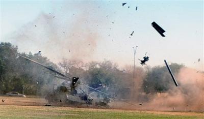 據(jù)目擊者說,他們看到有5架黑鷹直升機(jī)起飛和降落,其中1架升空后不久就失去控制,之后開始打轉(zhuǎn),隨后突然墜落地面。