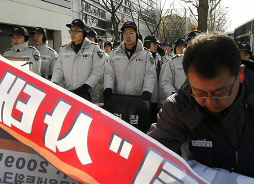 首爾當(dāng)?shù)?3日中午,數(shù)十名雙龍工會(huì)及一些市民團(tuán)體成員圍堵在中國大使館門前示威,在近兩個(gè)小時(shí)的抗議過程中,示威者借助擴(kuò)音器不斷地喊“中國上汽應(yīng)做出賠償”、“上汽竊取雙龍汽車核心技術(shù)”等口號(hào),這些人的圍堵給使館人員進(jìn)出造成很大不便。多家韓國媒體也趕到抗議現(xiàn)場報(bào)道,紐西斯通訊社報(bào)道稱,參加示威的有雙龍工會(huì)等11個(gè)市民團(tuán)體成員。工會(huì)方面宣稱,由于上汽是中國國有企業(yè),中國政府也該為雙龍危機(jī)負(fù)責(zé)。而一些團(tuán)體指責(zé)“上汽偷竊雙龍技術(shù)是對(duì)數(shù)十萬韓國工人的犯罪”,要求韓國政府追究上汽責(zé)任。