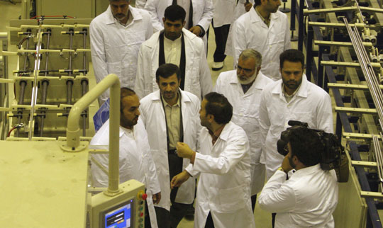 中新網(wǎng)4月10日電 綜合媒體報(bào)道,伊朗總統(tǒng)艾哈邁迪-內(nèi)賈德9日在伊朗中部城市伊斯法罕附近出席伊朗首座核燃料工廠落成儀式。