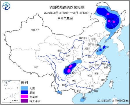 中新網8月14日電 中央氣象臺14日06時繼續(xù)發(fā)布暴雨黃色預警:8月14日08時到8月15日08時,四川盆地大部、陜西南部、山東中南部和東部、內蒙古東北部、黑龍江大部、吉林大部、遼寧東部以及海南大部、云南西南部等地的部分地區(qū)有大雨或暴雨.