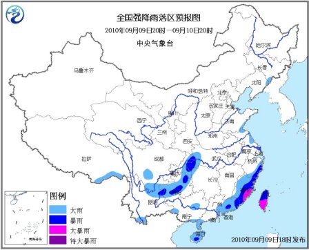 中新網(wǎng)9月9日電 據(jù)中央氣象臺網(wǎng)站消息,中央氣象臺9月9日18時繼續(xù)發(fā)布暴雨藍(lán)色預(yù)警:9月9日20時到10日20時,川西高原南部、重慶東部、湖北西南部、貴州中北部和西部、云南東北部、浙江東部沿海和南部、福建、廣東中東部和西南部、廣西南部、海南、臺灣等地有大雨或暴雨,其中,福建東南部、臺灣南部等地局部有大暴雨;另外,西藏東南部、江蘇東北部等地的部分地區(qū)有大雨;上述地區(qū)局部并伴有短時雷雨大風(fēng)或冰雹等強(qiáng)對流天氣。