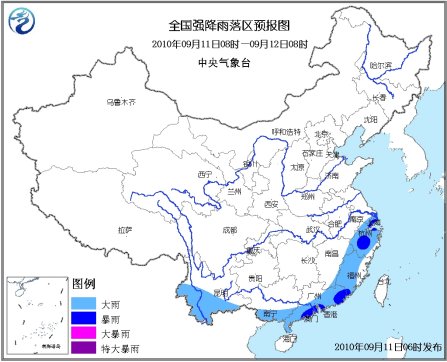 中新網(wǎng)9月11日電 據(jù)中央氣象臺網(wǎng)站消息,中央氣象臺9月11日06時繼續(xù)發(fā)布暴雨藍(lán)色預(yù)警:9月11日08時到12日08時,江蘇東南部、上海、浙江大部、江西東北部和東南部、福建大部、廣東中南部和東部、廣西南部、云南南部等地有大雨或暴雨;上述地區(qū)局部并伴有短時雷雨大風(fēng)等強(qiáng)對流天氣。